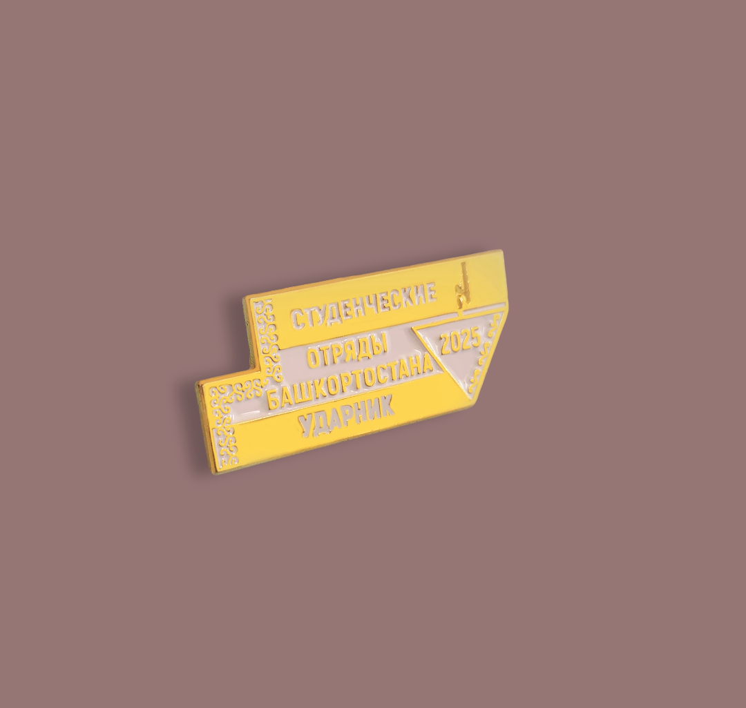 Студенческие отряды Башкортостана заказывали в 2025 г. несколько видов нагрудных значков. Атрибутика выпускалась в соответствии с нормами оформления, установленными в молодёжной общероссийской организации «РСО», ориентиром выступал заданный эскиз. Сюжет изделий, созданных для регионального отделения, информирует о самоотверженном труде студентов.